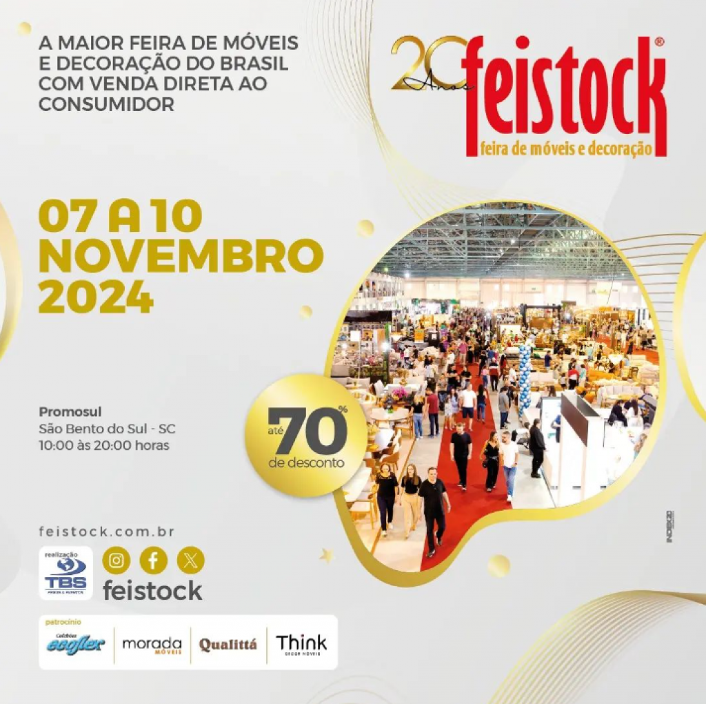 A maior feira de móveis e decoração do Brasil com venda direta ao consumidor acontecerá de 07 a 10 de novembro, na Promosul, em São Bento do Sul/SC – a Capital Nacional dos Móveis! 🏠